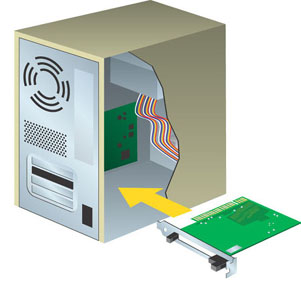 Remove the slot cover and insert the PCI Adapter. PCI slots are typically