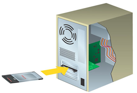 PC Card is fully inserted and detected. When Windows detects the new hardware,