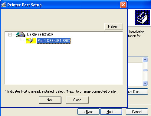 Click Close to exit the Printer Port Setup. Repeat this step on