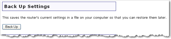 At any time, you can use Back Up Settings to save a backup file of your current router configuration, such as before you make significant changes to your router
