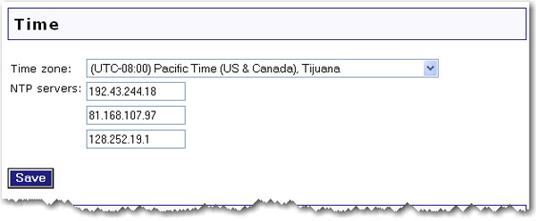 The Time setting for your router apply to any firewall rules that you have in place. If you are using any firewall rules, you should set your Network Time Protocol (NTP) server and select your time zone.