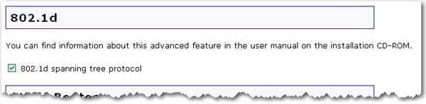 The 802.1d spanning tree protocol is a management protocol that allows bridges within a network to communicate with each other to prevent loops within the network. This is enabled by default.