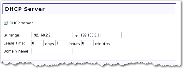 Lease time: You can set the Lease time for the assignment of IP addresses to network clients. This determines how long a client is allowed to use an assigned IP address. If a client is not active for a period of time and the lease expires, the IP address will be released and can be used for another client. The expired client will then have to send a request for an IP address the next time it attempts to connect to the network. You can change the length of the lease depending on how long you think a client should have an IP address. There is no need to change this setting unless you have a large network and you are short on available IP addresses to be assigned.