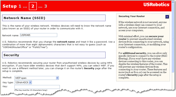 Enter the Network Name (SSID), select a security Method, and enter your wireless security information for the router, then click Continue.