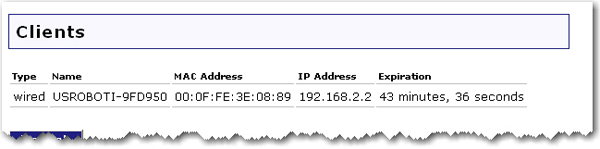 access by locating the appropriate device listed under Clients in the client list on the Status page (for example, 192.168.2.10).