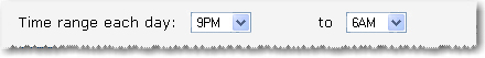 For Time range each day, select 9PM in the first field and 6AM in the second field. If you want a different time range, you can make different selections in each field.