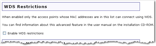 To allow other WDS devices to connect to the network while the router is in Bridge mode, scroll down to the WDS Restrictions section.