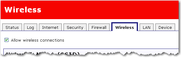 To enable the wireless functions on your router, verify that Allow wireless connections is checked.