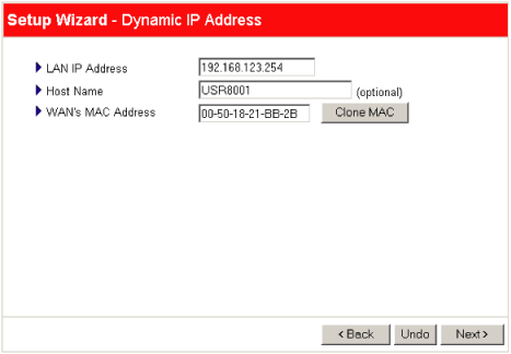 If your WAN type is Dynamic IP Address, the Setup Wizard prompts you for the following information.
