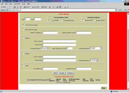 - VPI/VCI Settings