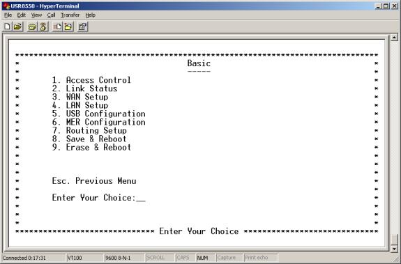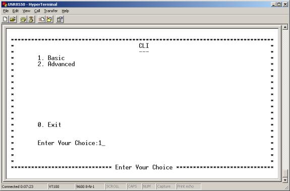 - Enter 1 to open the to the Basic Menu.