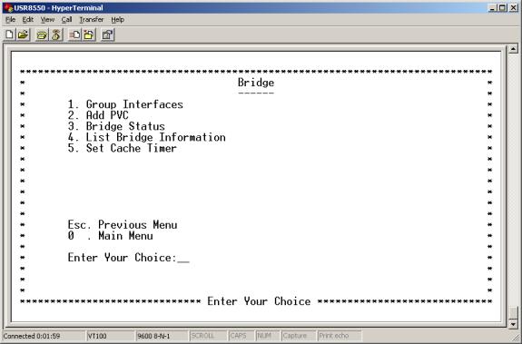 Enter 1 at the Bridging Menu. The Bridge Menu appears. This menu provides the following options…